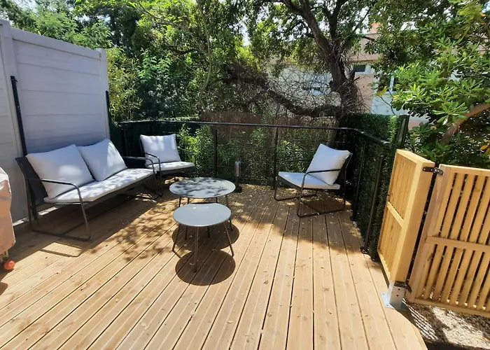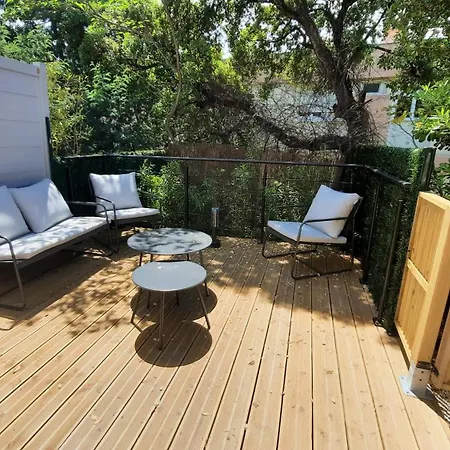 El Studio climatisé Lantanas 4 personnes Le Lavandou está situado a 5 km de la Plage du Layet, y a unos 25 minutos a pie de la Residencia les Rives de la Faviere. Los huéspedes pueden relajarse y contemplar las vistas al jardín desde la terraza de este apartamento de 24 m².